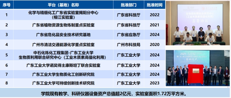 科研平台建设,建设有广东省工程技术中心10个,广东省教育厅重点实验室1个,目前重点建设平台如下:
