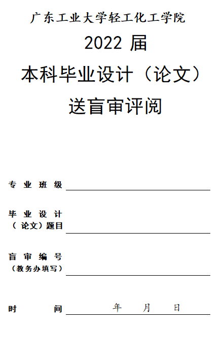 附件1 轻工化工学院2022届本科毕业设计(论文)盲审评阅表