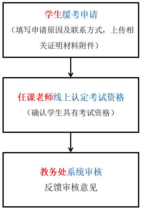 1. 因故不能参加考试,必须在考试前至少提前2天提出申请,经任课教师考试资格认定并且教务处审核通过后方可缓考。