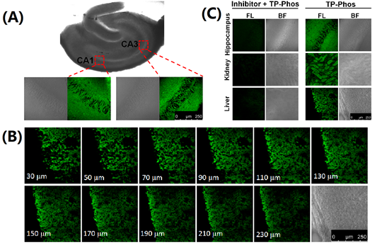 近期,动漫狂 有机无机杂化功能材料团队、应用化学系张华堂副教授和何军教授联合香港城市大学化学系孙红燕教授等国内外研究团队通过荧光检测方法在生物活性分子的实时在线检测领域获得重要进展。团队成员通过一系列的有机分子设计合成、溶液体系荧光检测、活体细胞及组织内双光子深层成像检测等技术,得到了一系列生物体内活性分子的特异性识别荧光探针。主要被检测物包括生物体内的碱性磷酸酶,Cu2+及HOCl等。相关研究成果先后发表在国际著名期刊:Biomaterials,2017, 140, 220-229(JCR一区); Biosensors and Bioelectronics, 2017, 94, 24-29(JCR一区); Chemical Communication, 2017, 53, 12349-12352(JCR一区)。