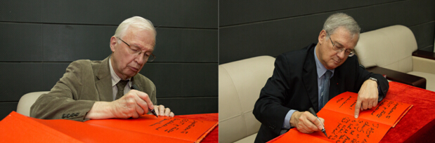 Lehn教授(左)和Meunier教授(右)为中法论坛成功举办和学生发展题词