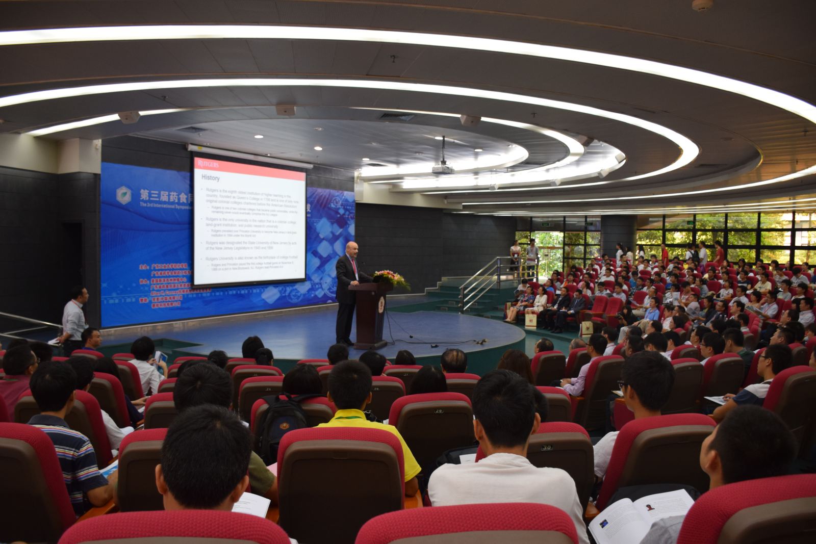 会议议程安排紧凑,开幕式上张力副校长、Rutgers大学副校长Chrisopher J. Molloy先生、广东药学会领导及会议赞助商中山完美公司领导依次致辞,随后迅速进入会议主题。13位专家代表先后做了精彩的大会报告,介绍了各自团队在药理、药化、中药化学、药食同源等多个方面的前沿工作,给在场的300多名与会代表开了一个学术盛宴。会议期间,大家还一起缅怀了为建立动漫狂