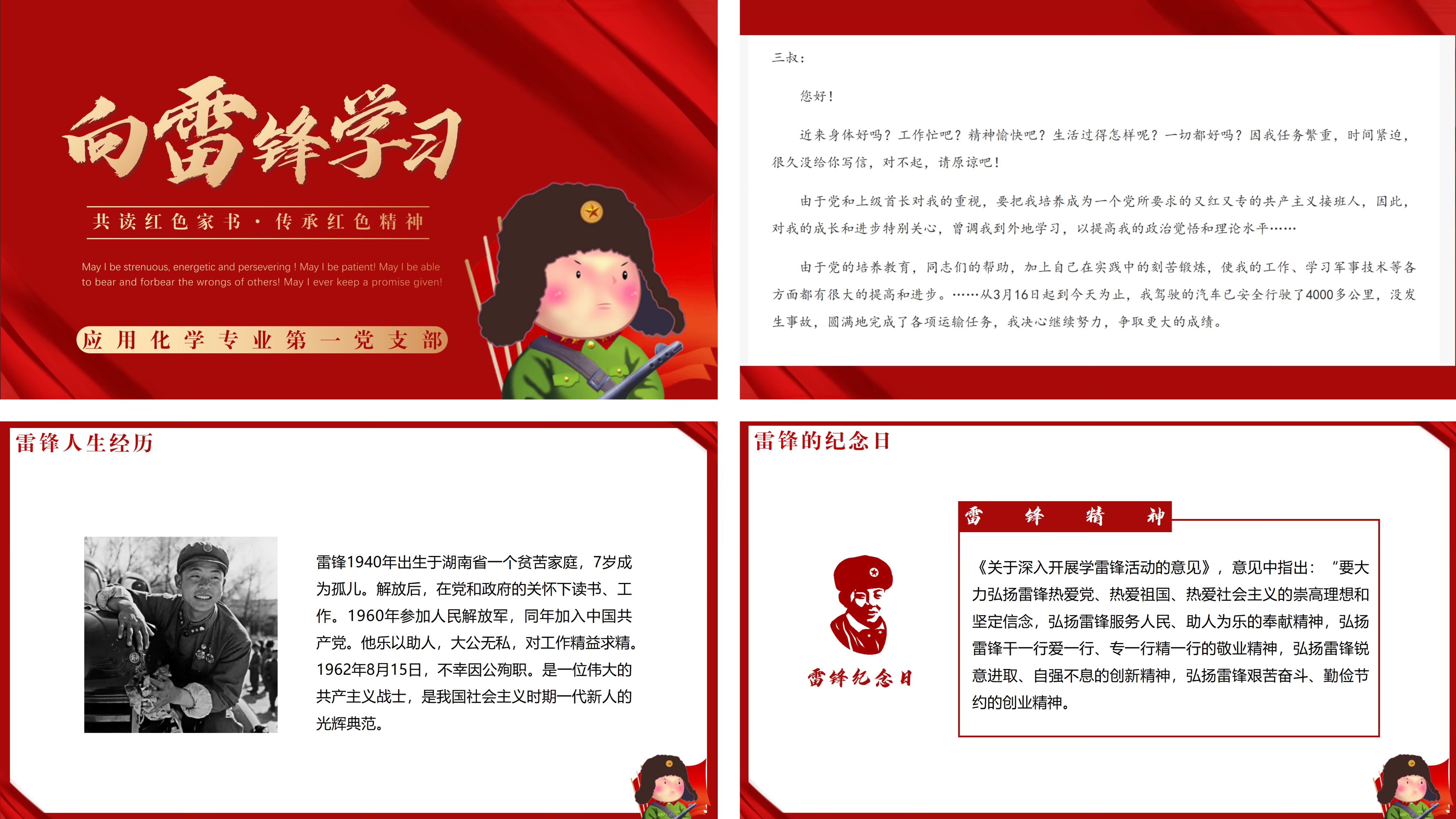 应用化学专业第一党支部在东八学生社区育人空间组织开展“共读红色家书,传承红色精神”学雷锋月主题活动,活动由支部书记冯浩宸主持。