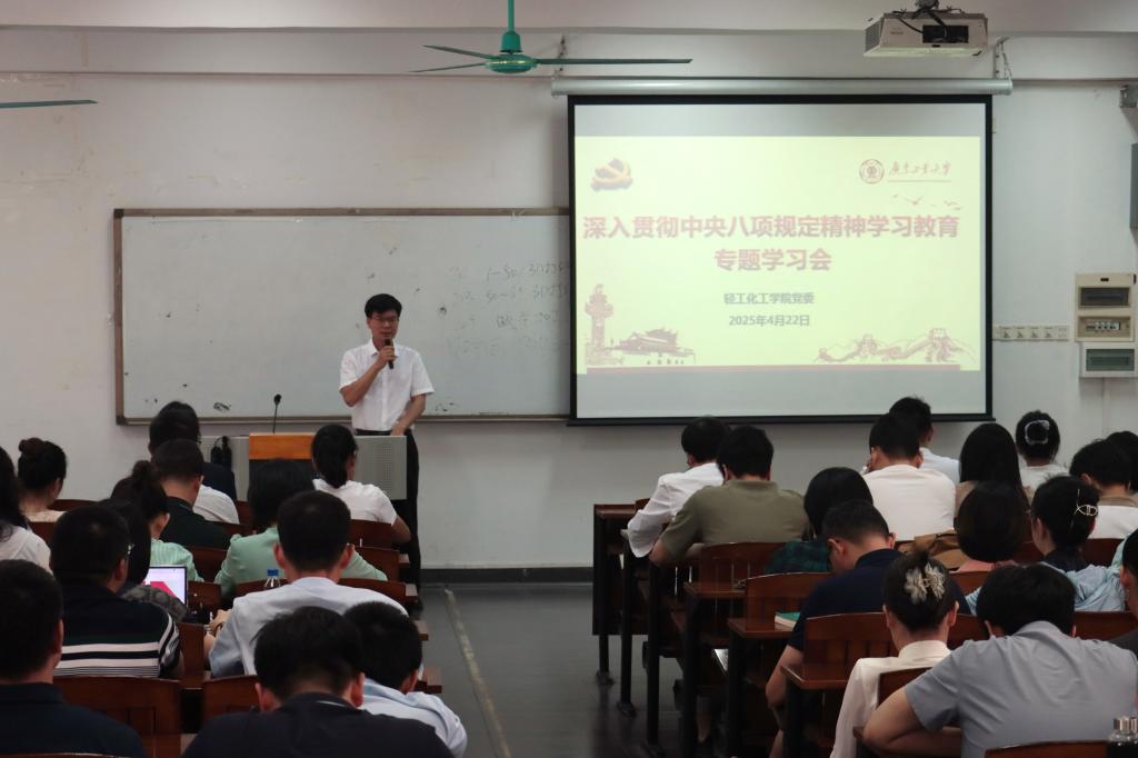 党委召开深入贯彻中央八项规定精神学习教育专题学习会。学校纪委办公室主任谭娅受邀作学习辅导报告,学院党委理论学习中心组成员、全体教职工党员参加会议。