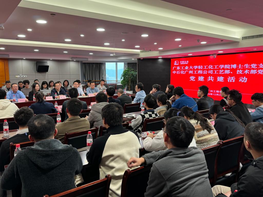 博士生党支部赴中石化广州工程有限公司,与该公司工艺部技术部党支部开展了支部共建活动。学院党委书记周东斌,学校科技处副处长秦延林,学院党委副书记杨刚、院长助理林绪亮,科技处产学研合作科柯晴瑾,学院党建组织员冯浩宸以及动漫狂