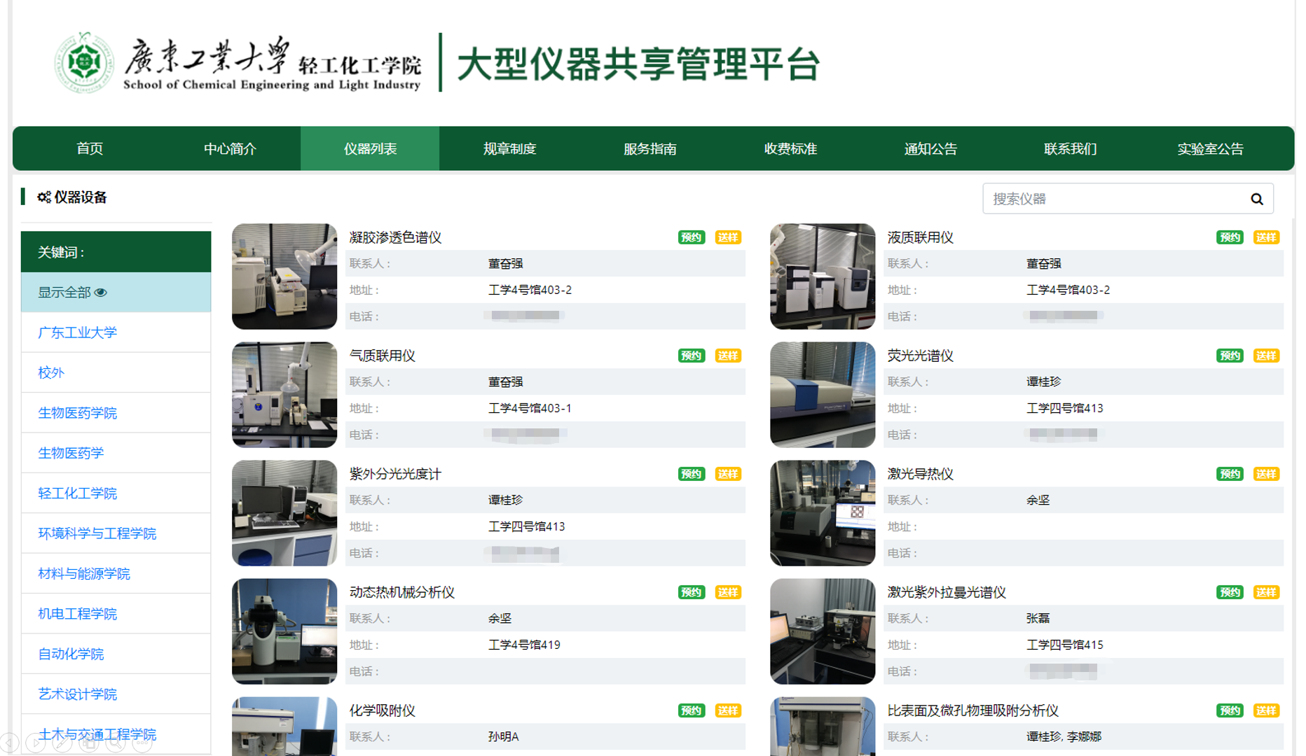 现有国家级本科工程教育中心1个、国家级虚拟仿真实验教学示范中心1个、广东省重点实验室1个、省级工程技术中心8个、广东省教育厅重点实验室1个,广州市重点实验室1个,1个创新研究院(能源化学与精细化工创新研究院)和15个科研实验室。学院现有教学、科研仪器设备资产总值超1.5亿元,教学和科研实验室面积1.2万平方米。
