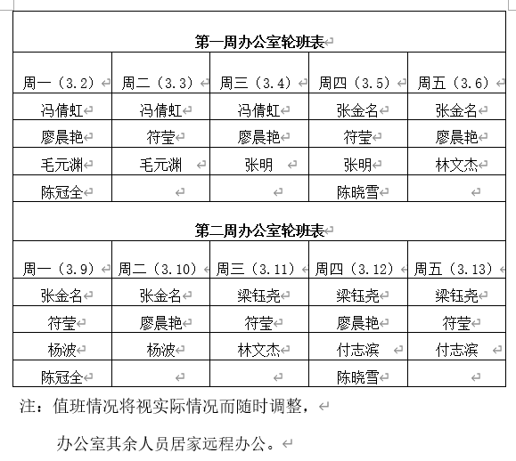 6.学院行政办公室轮值上班,其他居家网上办公制。
