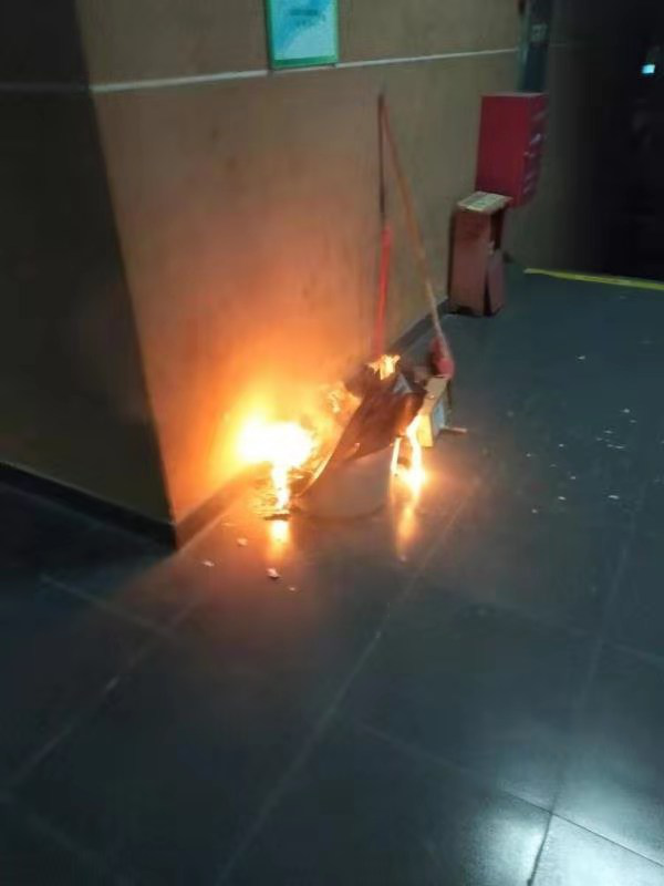 2019年11月19日凌晨3点43分,值班保安发现工学四号馆五楼楼梯口垃圾桶起火,值班保安立即报火警并且及时控制火势,未酿成严重后果。经学校相关部门初步调查,可能是未熄灭的烟头所致,相关调查仍然在进行中。工学四号馆大部分科研实验室储存有大量易燃易爆危化品,一旦起火后果不堪设想。特此提醒以及要求工学四号馆的全体师生,为保障全体师生的公共安全,禁止在工学四号馆吸烟,望师生们高度重视,共同遵守相关规定,并且相互监督。