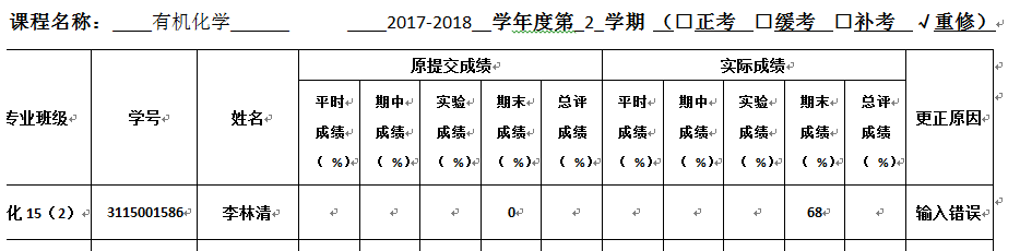 备注:公示期内,如对上述成绩变更有异议,请与学院教务办联系。