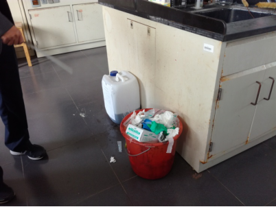 检查结果表明,科研实验室的脏乱差现象总体上有较大的改观,老师和学生的安全意识有一定的提高,大部分实验室的物品摆放整齐有序,但是普遍存在以下问题:(1)实验室的垃圾没有及时清理,实验台面和仪器表面等严重落灰;(2)实验室库存易燃有机试剂或者耗材过多,占用较多实验室有限的空间;(3)常用化学品和管控类药品没有分类管理;(4)运行中的仪器设备没有明显的警戒标识牌;(5)学生操作过程中没有任何防护;(6)通风橱使用不规范;等等。
