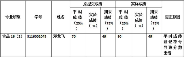 备注:公示期内,如对上述成绩变更有异议,请与学院教务办联系(电话:39322203,地址:工4-202-3 )