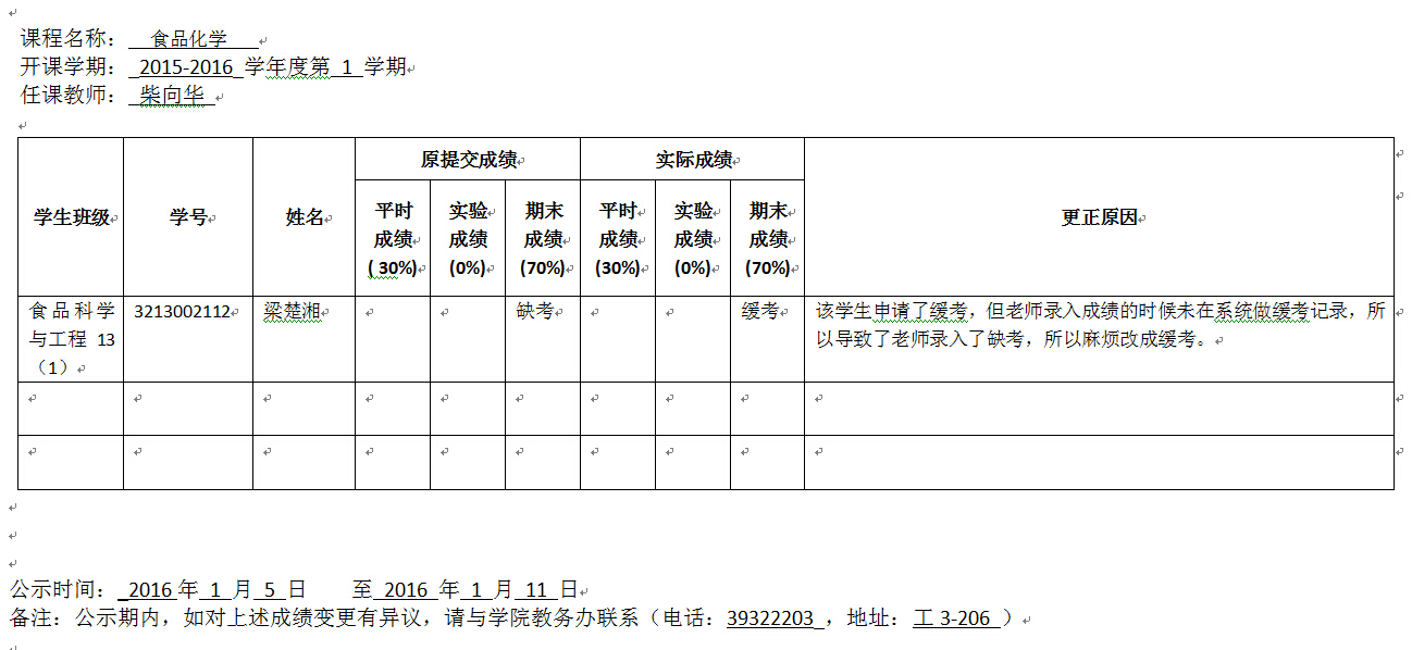 学生成绩变更公示