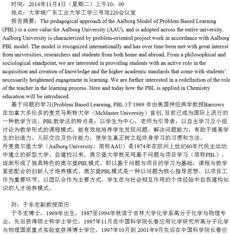 丹麦奥尔堡大学于东宏副教授学术报告