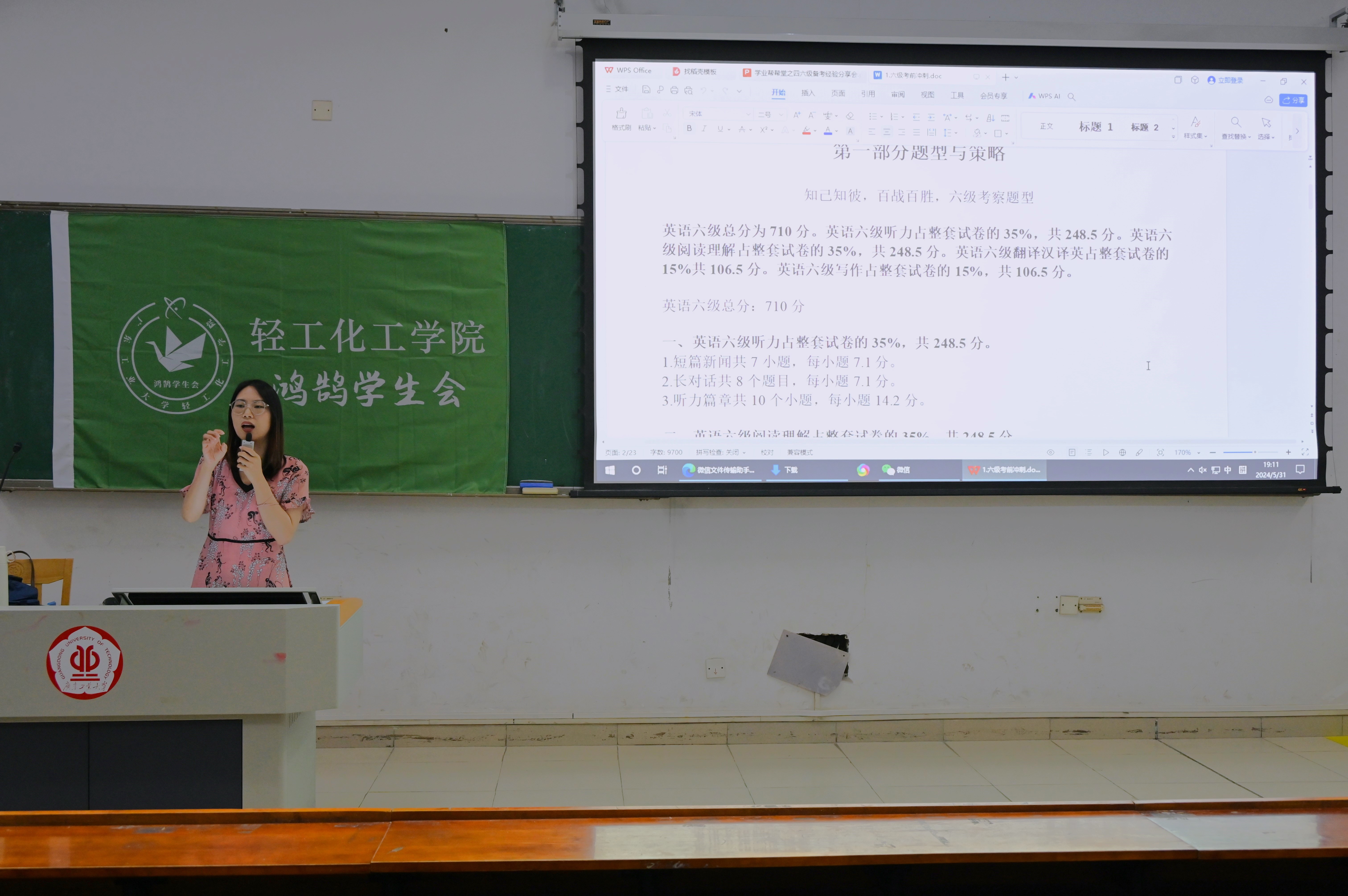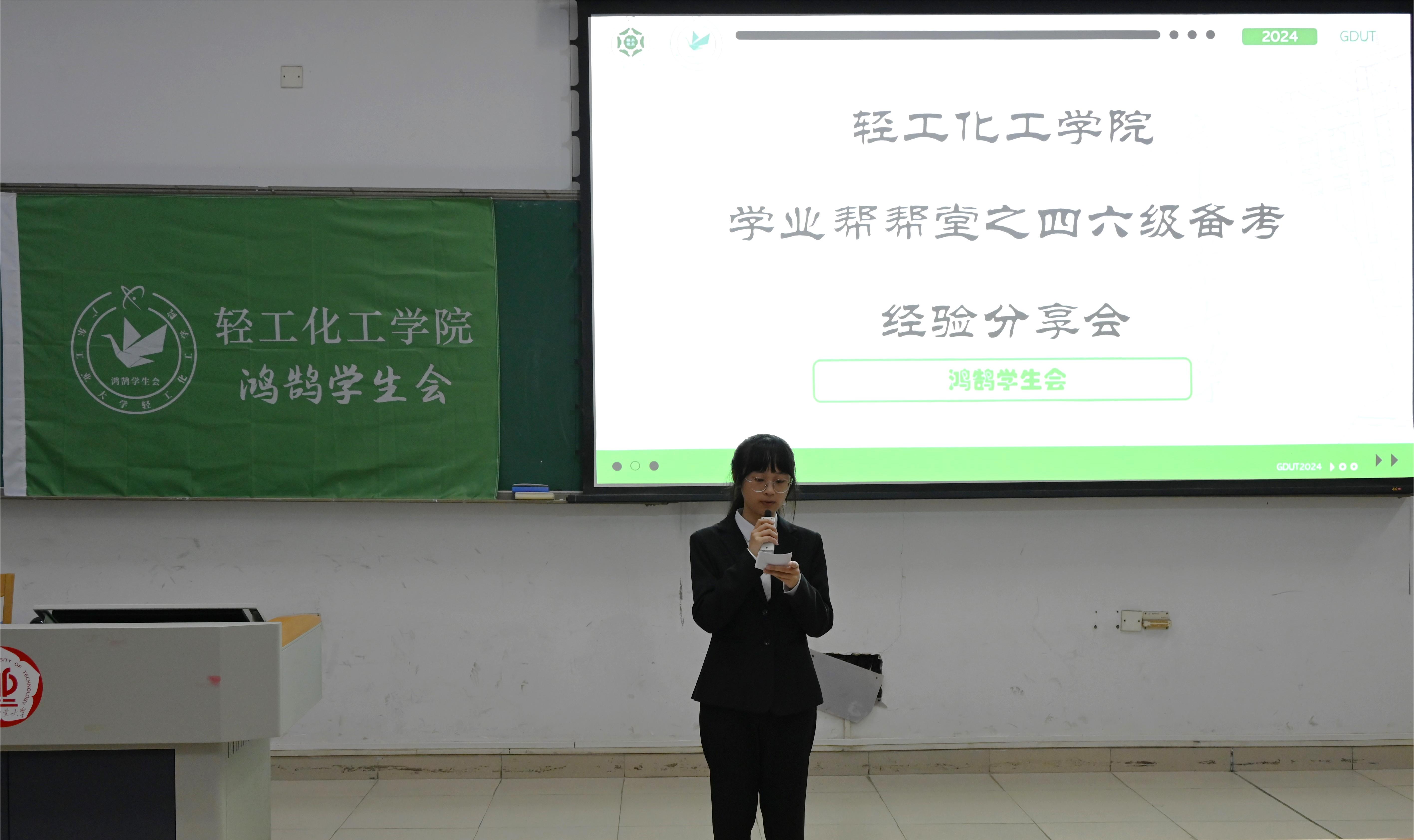 鸿鹄学生会于5月31日晚上在教四-210举办学业帮帮堂之英语四六级备考经验分享会,中大博士谢老师应邀主讲,百余名同学参加本次活动。