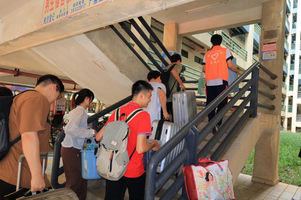 在迎新现场,新生学长、迎新使者及“帮帮团”志愿者身着统一的服装,忙碌而有序地穿梭于人群中。他们不仅为新生提供行李搬运、路线指引等基础服务,还耐心解答新生关于校园生活、学习安排等方面的疑问。每一个微笑、每一句问候都传递着志愿者们对新生的热烈欢迎和深切关怀。