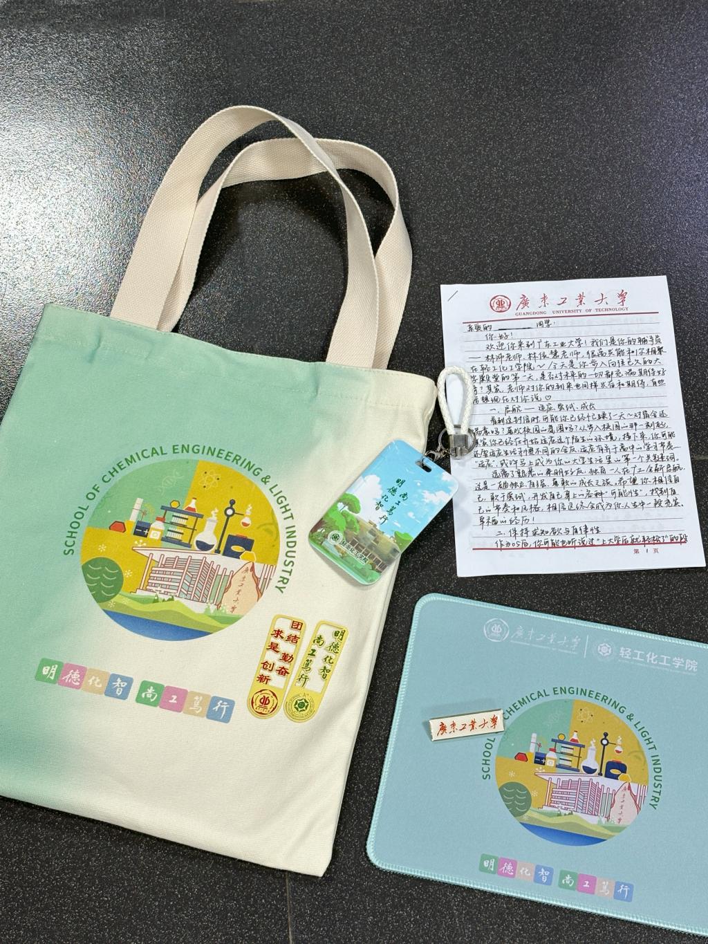 同时,学院为新生们精心准备了实用精美、富有学校元素及学院学科特色的新生纪念品——学院定制帆布袋、鼠标垫、卡套、校训院训书签、新生辅导员“致新生的一封手写信”,以此勉励新生践行“团结、勤奋、求是、创新”的校训和“明德化智 尚工笃行”的院训精神,坚定信念,勤学善思。家长与新生接到纪念品后,纷纷表示“学院迎新用心用情,新生纪念品实用好用”,并在学院迎新打卡点拍照留念,共同记录入学宝贵精彩瞬间。