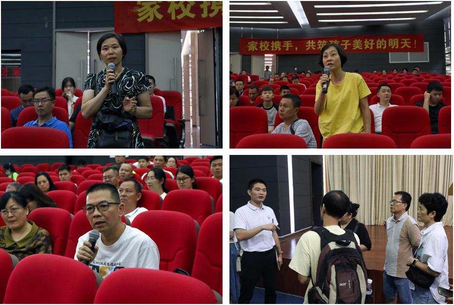 随后,学院2024级研究生新生辅导员项浩晟,本科生辅导员林沛、林依慧三位辅导员向家长分别介绍了自己所带专业班级及联系方式,以及新生入学教育、思想引领、生活指导、心理健康等方面的具体安排。在答疑交流环节,新生家长们围绕专业学习、家校合作、校园生活、社团活动、心理健康等多个方面踊跃提问。学院领导及辅导员们耐心细致地为家长们一一解答,新生家长表示本次家长会极大地拉近了家校之间的距离,展现了学院“爱生如子”的深切关怀,是拉进家校沟通的创新方式。