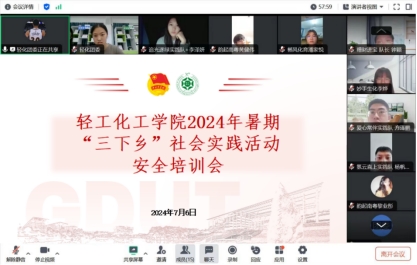 于7月6日下午在线上召开学院2024年暑期“三下乡”社会实践活动安全培训会。学院团委书记李韵捷老师,学院辅导员及社会实践队伍代表参加培训会。学院团委副书记张昊昀从交通安全、防盗防抢、如何应对极端天气等方面为参与社会实践活动的师生做安全教育,增强实践队员们的安全与危机防范意识,提醒实践团队做好安全预案。