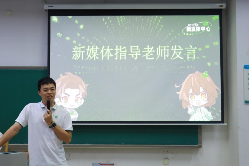 随后,张昊昀对新加入的成员表示热烈欢迎,同时肯定了新媒体中心在过去一年中取得的成果。他强调了新媒体工作在学院宣传口的重要性和挑战,并希望全体成员能保持创新精神、勇于尝试、积极学习,提高团队整体业务水平,提升学院新媒体中心的战斗力。