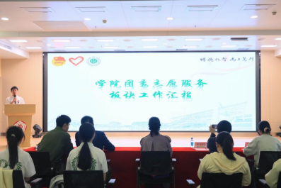 学院团委周国炫同学在志愿服务板块工作汇报中,重点介绍了“科普童行,放飞梦想”科学公开课志愿服务项目。该项目以“科普教学”为抓手,结合学院学科特色,围绕科普志愿服务工作主线,在实践中打造“1+9+11+N”模式,有效组织轻化学子在学以致用的过程中践行志愿者精神,用学院学科特色,打造精品项目。