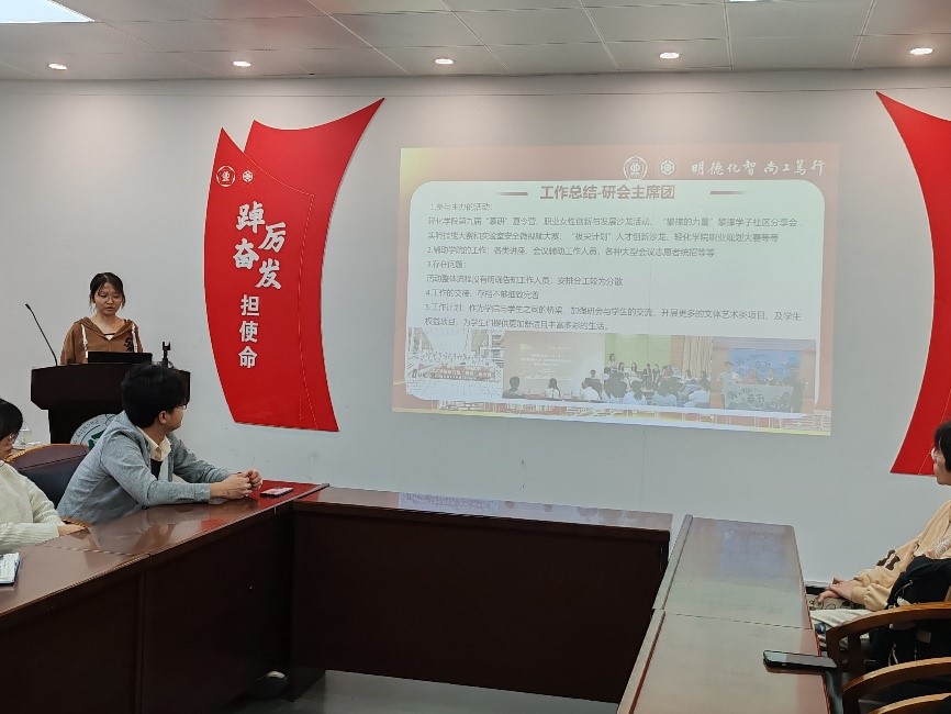 近日,为总结轻化研究生会过去一学期的工作情况,提高学生干部的工作能力,学院研究生会全体工作人员在工学四号楼202会议室召开了研究生会2024-2025学年秋季学期述职评议大会暨工作培训会。