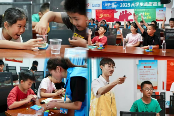 实践队前往广东省核工业教育基地,学习我国核工业从无到有、从弱到强的发展历程,将所学内容深刻融入科普课程之中;依托研学成果,将复杂的核科学原理转化为通俗易懂的科普课程,在官渡社区以“两弹一星”为主题,开展了为期3天,共6场科普教育活动,共计服务180人次,不仅激发了孩子们对科学探索的浓厚兴趣,也为他们的科学梦想插上了翅膀。