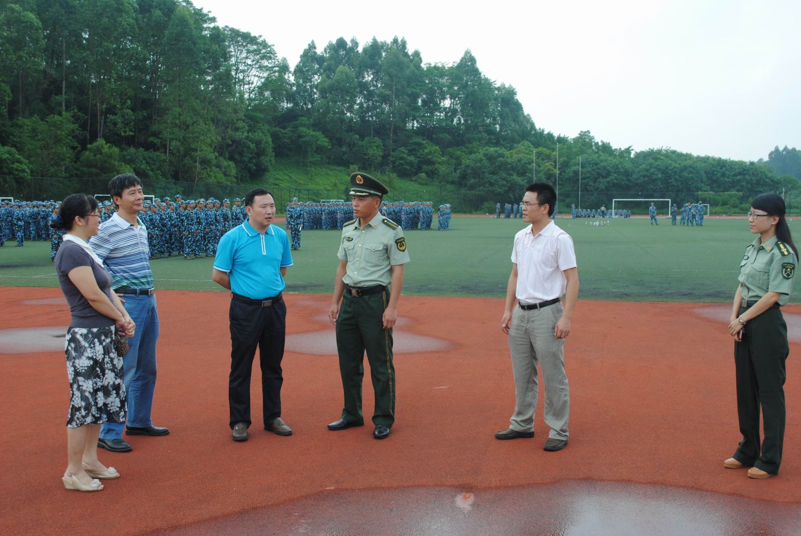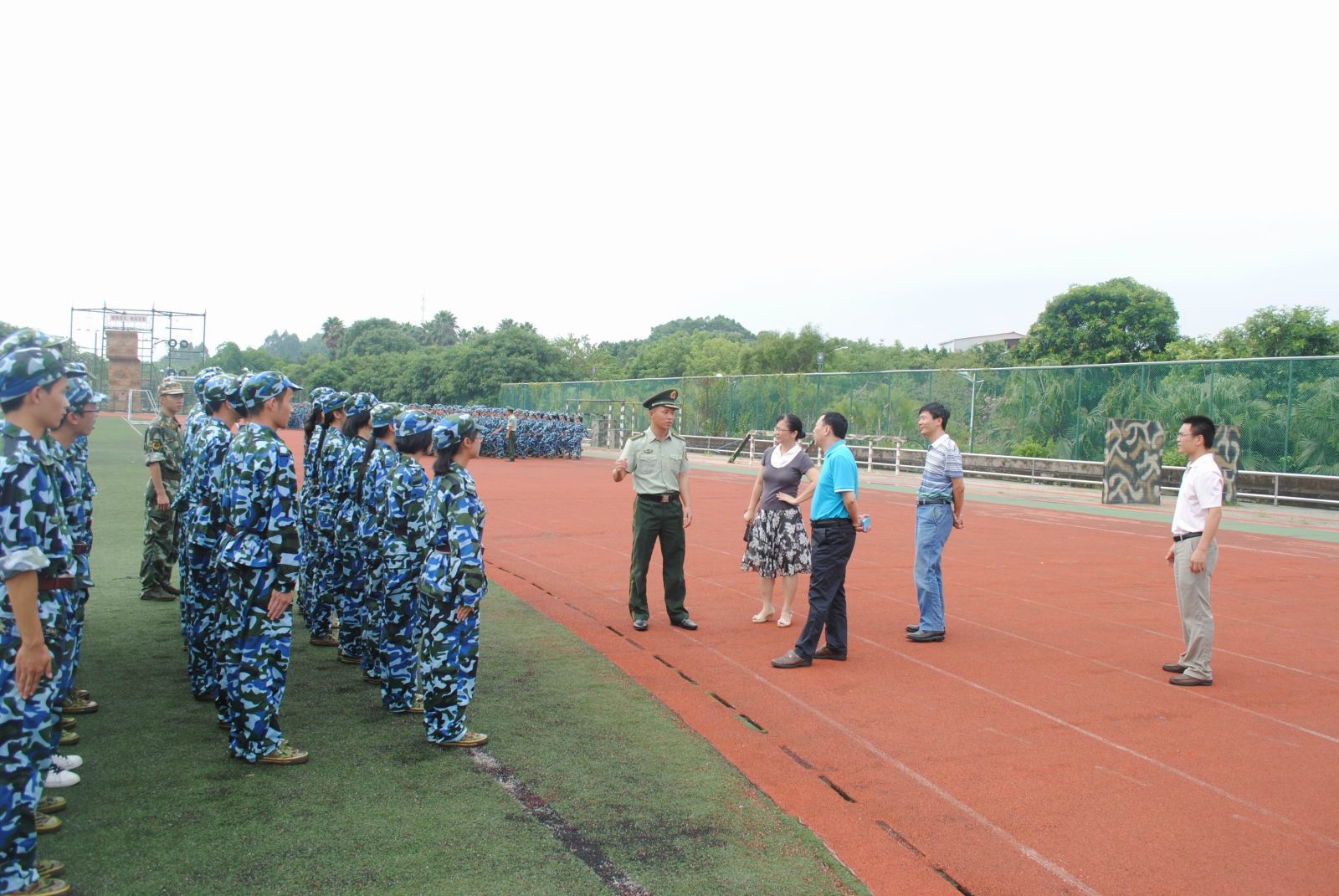 学院领导与三营李营长亲切握手,关切地询问了动漫狂