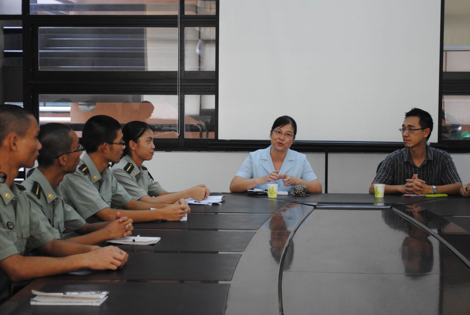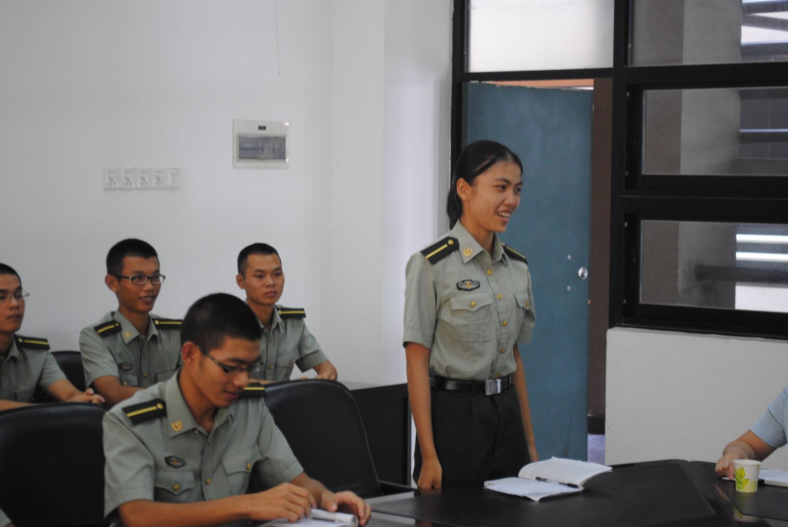 随后,2011级国防生陈剑锋、王承、苏微分别就训练、生活、学习三个方面讲述了自己的经历和收获,分享体会。在互动环节,13级的国防生积极发言,纷纷向师兄师姐们讨教如何合理安排学习和训练、如何处理校园文体活动和学习的冲突,如何处理好人际关系等。对此,11级的国防生们一一细心地解答。