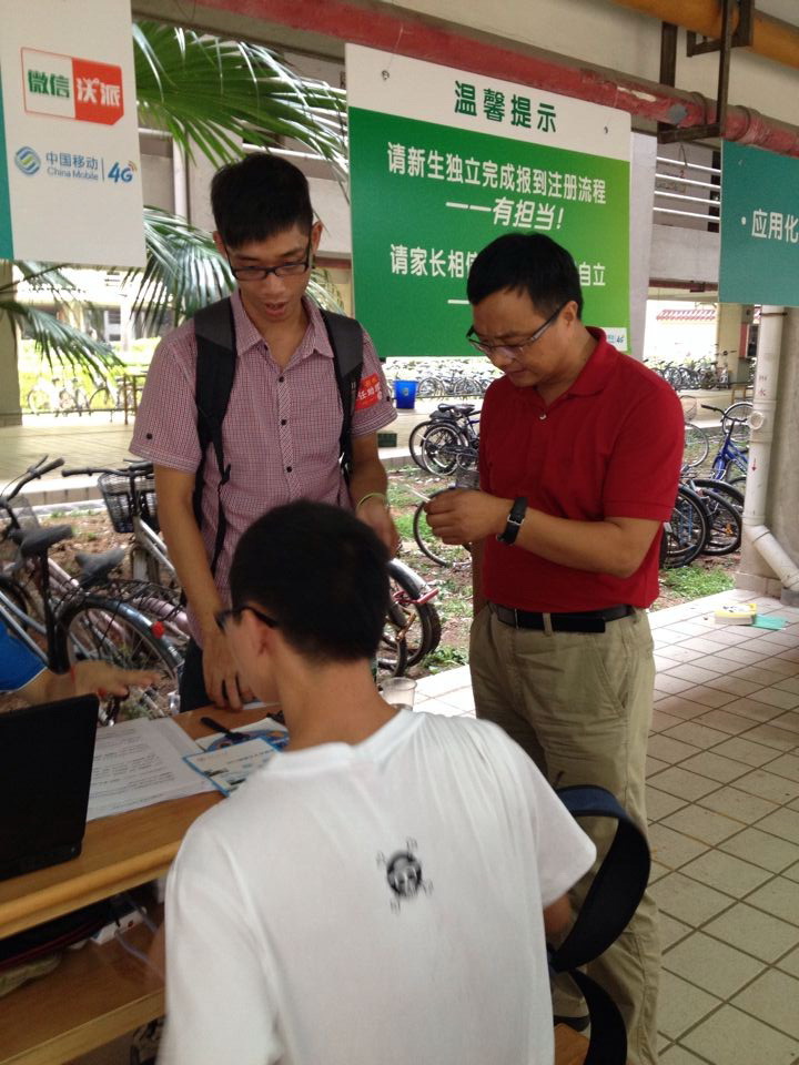 全体辅导员早早地来到学院迎新报到点迎接新同学的到来。本年度轻化学院共招新生763名,10号当天报到注册742人。