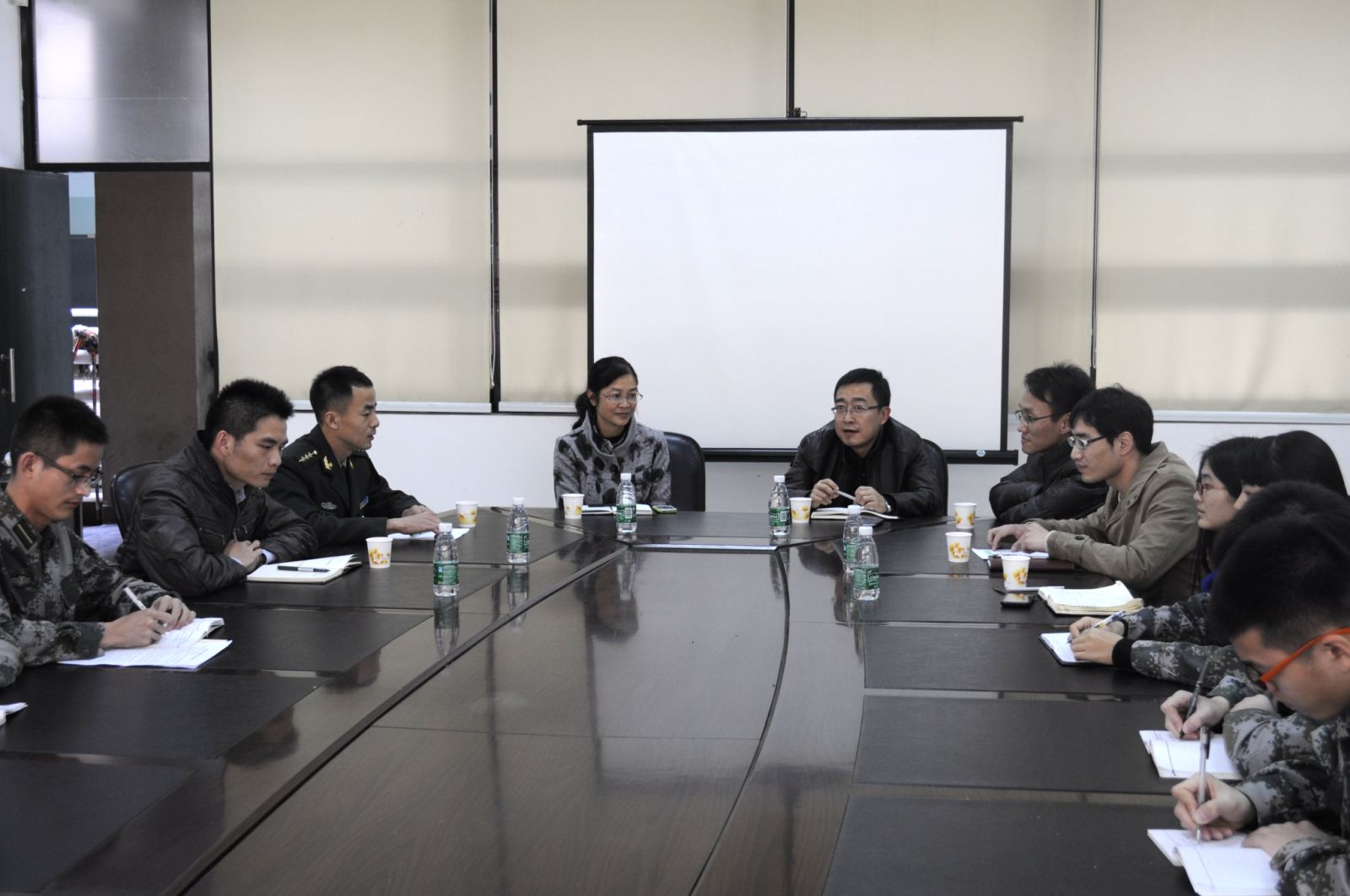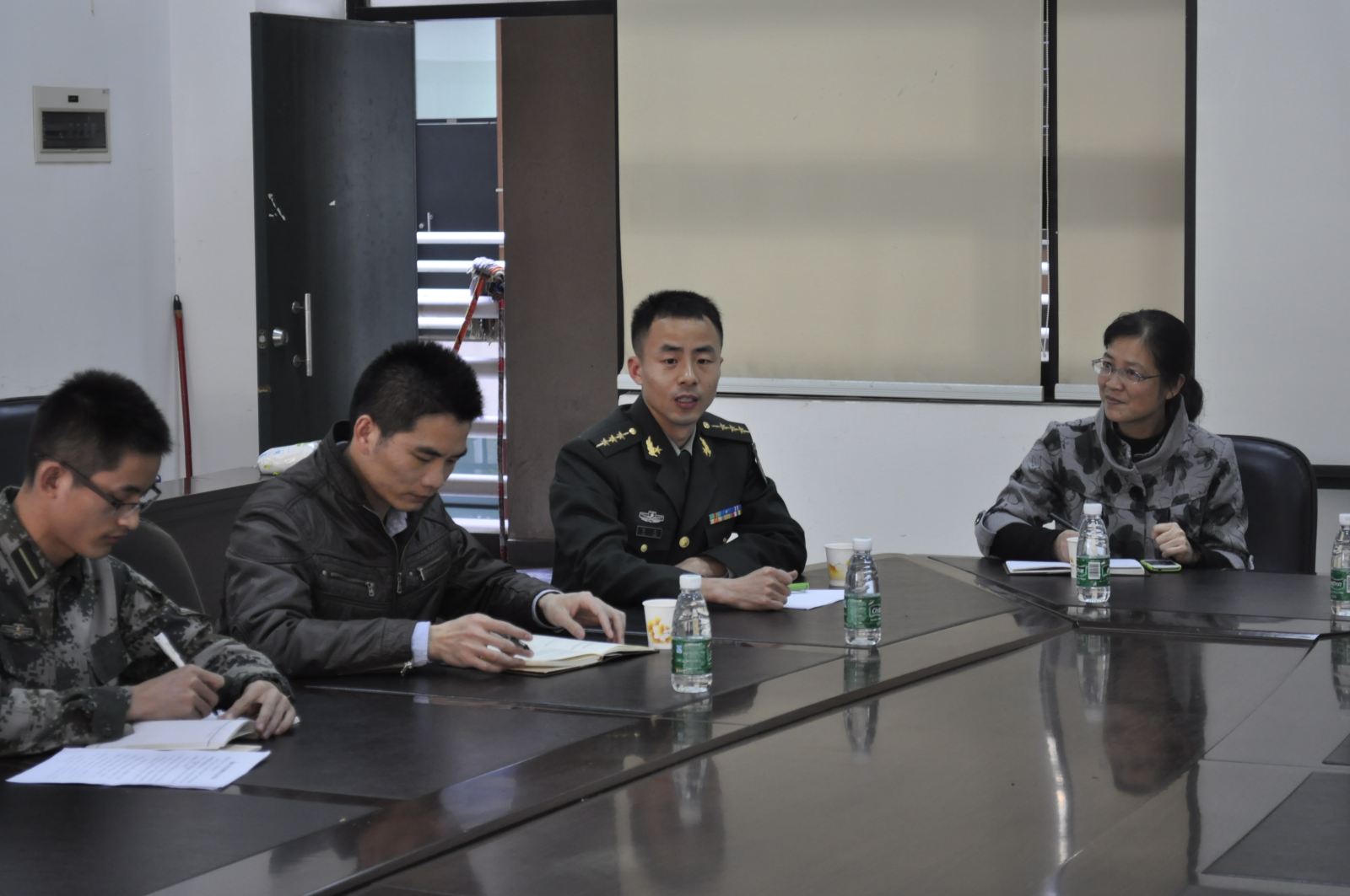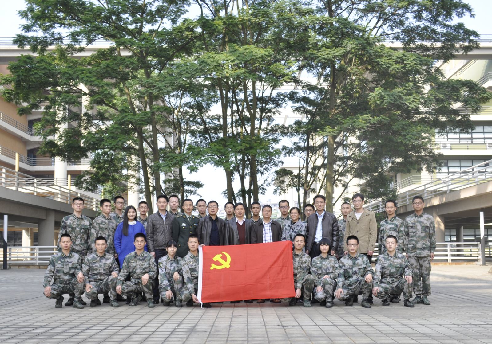 学院党委孙水裕书记、方岩雄院长向国防生党支部的成立表示祝贺,并和与会成员一起合影留念。