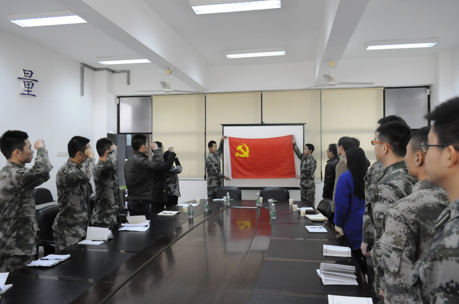 国防生党支部正式成立。与会全体成员一起在党旗下宣誓,重温入党誓词,国防生党员们纷纷表示要在组织中磨练自己,发展自己,发挥模范作用,争当院风、学风建设排头兵。