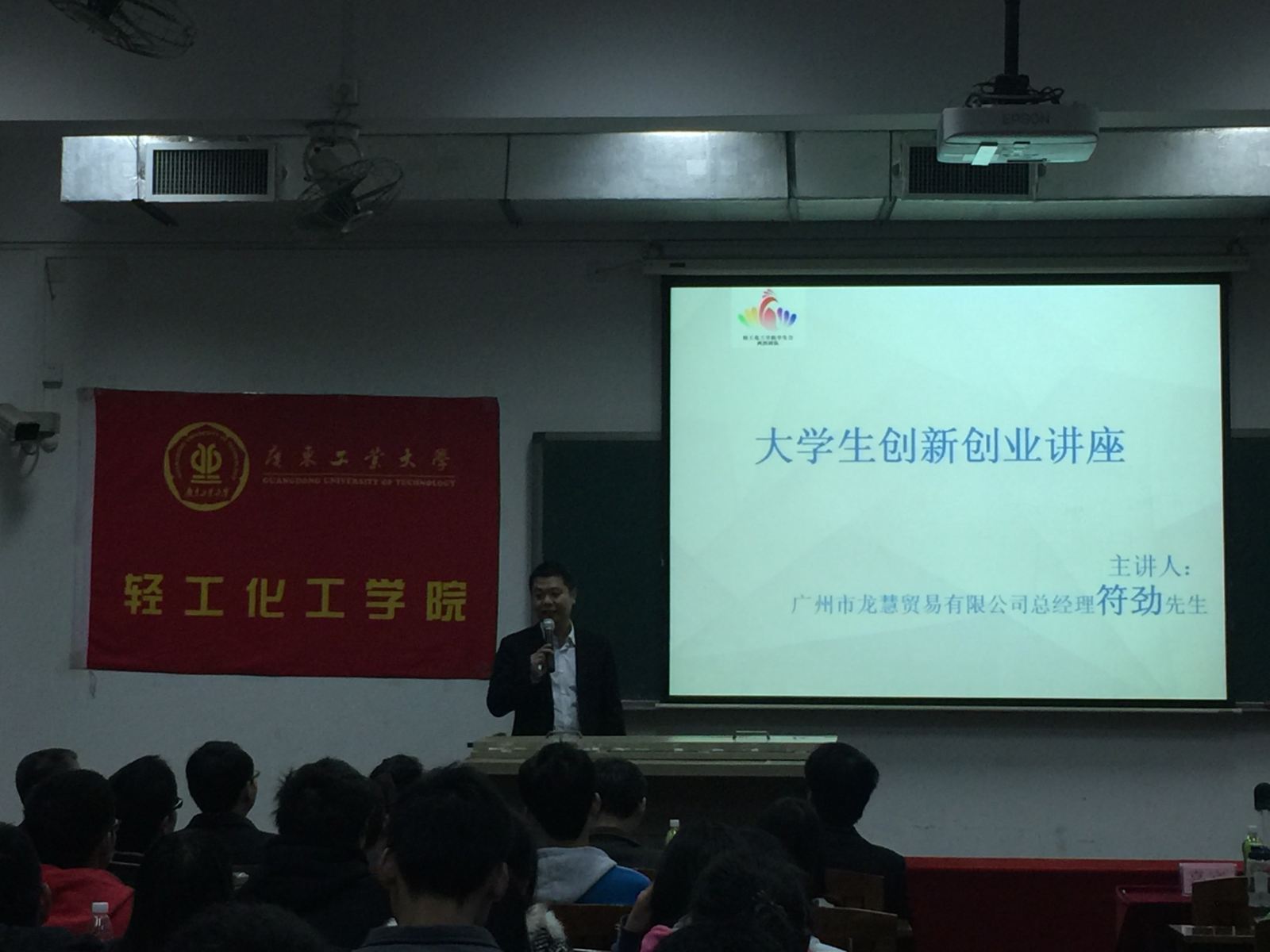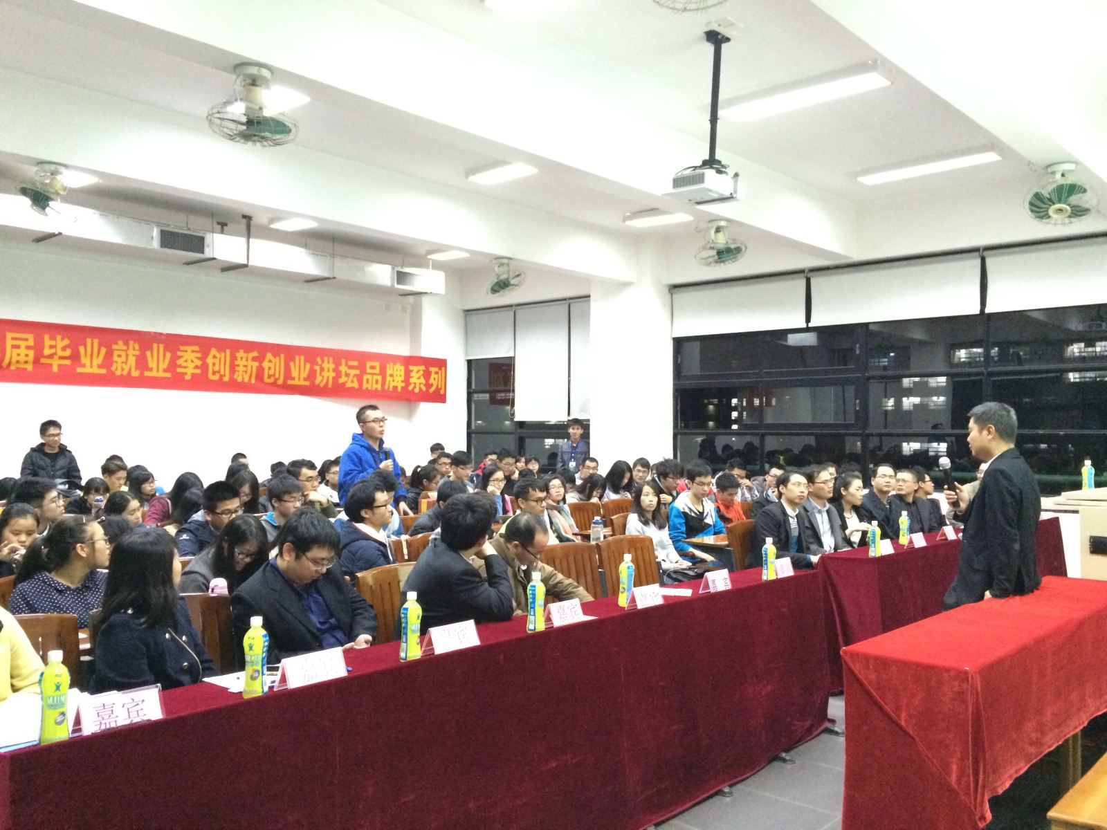 在教1-427成功举办2016届毕业就业季创新创业讲坛品牌系列活动(第五讲)。广州市龙慧贸易有限公司符劲总经理、李坤副总经理、康泽洋经理、曾献生经理、袁泽强经理等一行9人做客讲坛,动漫狂