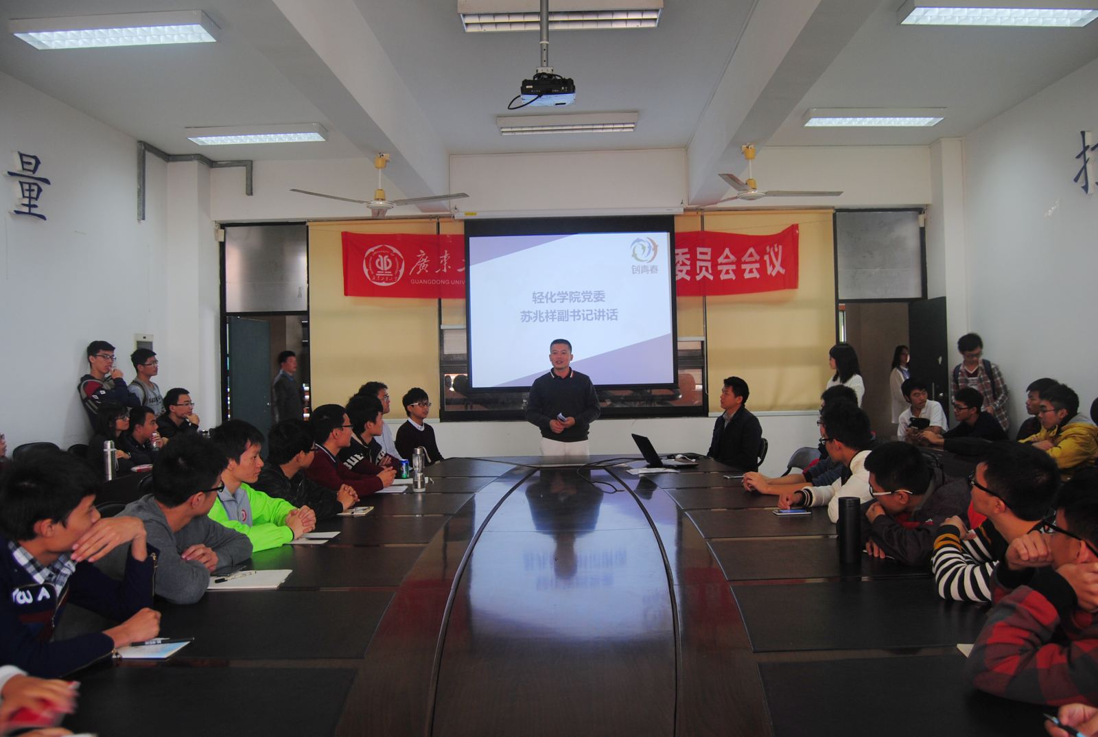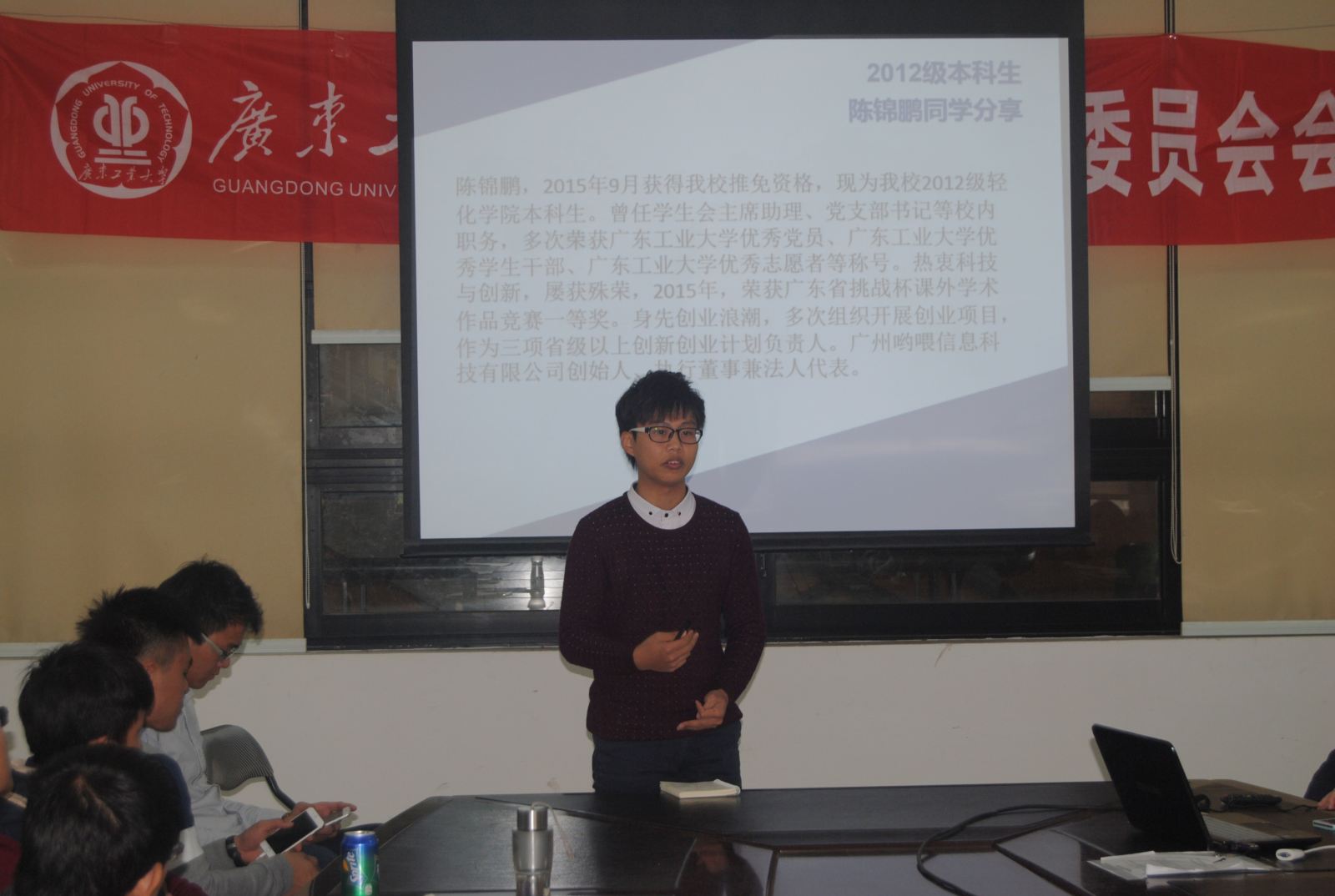 12月11日,动漫狂 第八届“创青春”学生创业大赛动员大会在工学三号馆220举行。动漫狂 党委苏兆祥副书记、学院团委书记单鹏举、辅导员李韵捷出席,张建刚、何洁鑫、谢建群、魏浩、陈锦鹏五位“创青春”国赛获奖学长与到会的近60名同学分享了经验。