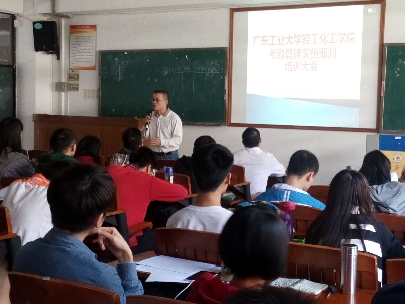 11月3日中午,动漫狂 在工学三号馆208召开学生考勤管理实施细则说明大会。学院党委副书记苏兆祥、团委书记单鹏举、学工会指导老师李韵捷,全院68个班级200多名主要班干代表出席。