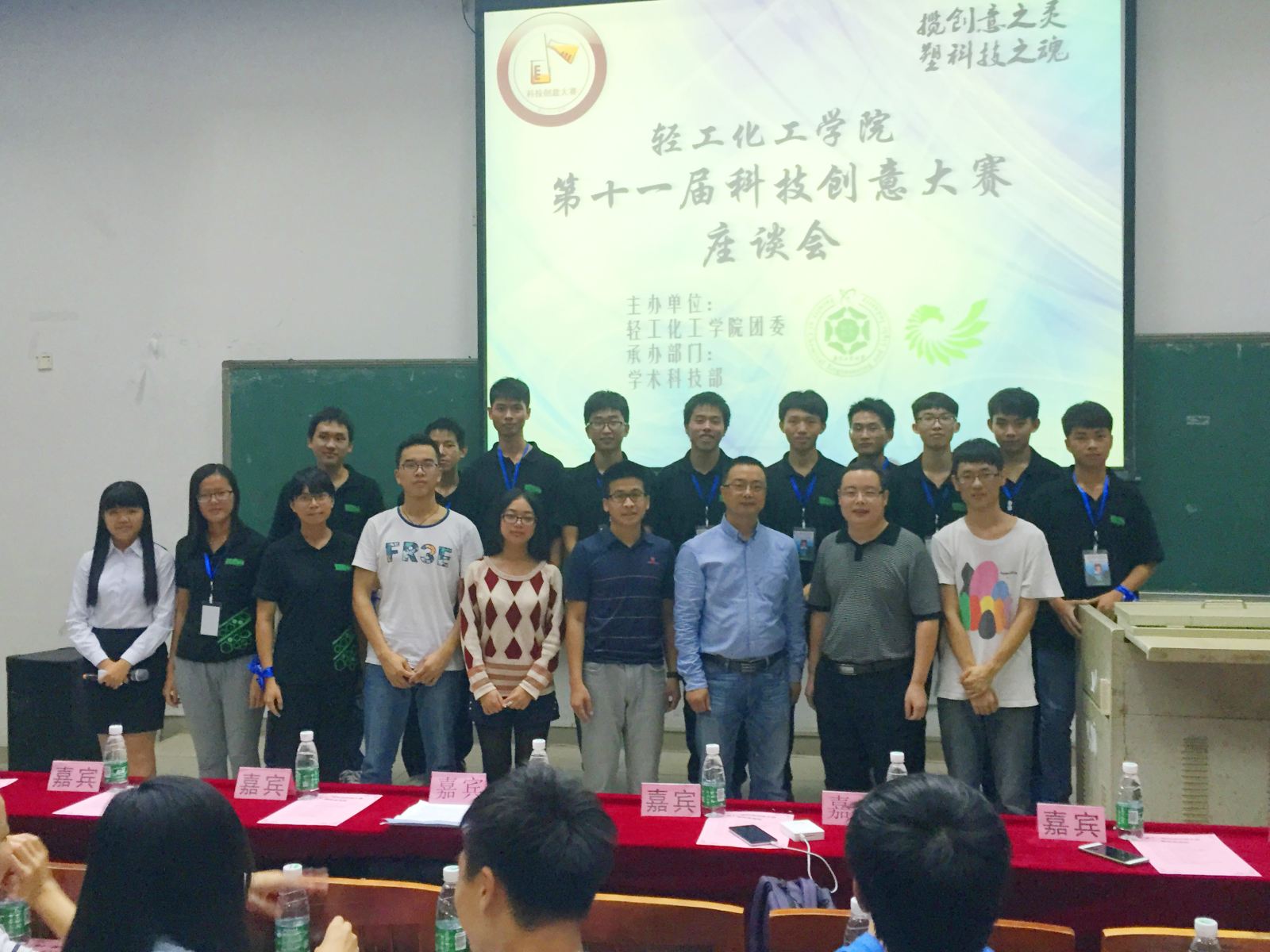 杜教授从社会迫切的现实“需要”入手并以“需要”贯穿座谈始终,以形象的生活实例子阐述了科技创新始于创意、创意要有生活迫切需要的背景,认为基于社会迫切的现实“需要”是衡量科技创意作品优秀的标准;希望同学们“不要太听话”,“思考不要受到限制”,要发散思维,突破传统思维的束缚,合理地筛选科技创意选题及构思,鼓励同学们多到实验室,多作辩证新思考;强调大学生做科研要目光长远,要耐得住刷瓶洗罐等看似简单、实则严苛的基础技能训练和考验,因为这本身就是在为下一步的科研时刻作着准备;不要为了创新而创新,不要只是为了获得一张奖状,而要体味创新的心路历程和成长收获,大学是知识、能力和素质的综合教育,而不仅仅是知识的教育。杜教授在交流环节对同学们提出的问题一一作了耐心解答,并提出了相关建议,为同学们上了一堂关于科技创新的公开课,同学们受益匪浅。