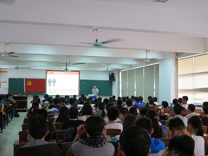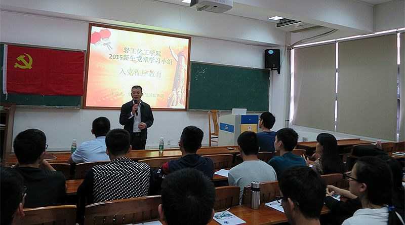 在工学三号馆208报告厅举办入党程序介绍大会,学校组织部组织科科长汤猛老师担任主讲,学院党委副书记苏兆祥、党建指导老师魏源,以及申请入党的新生和高年级党团学生干部参与大会。