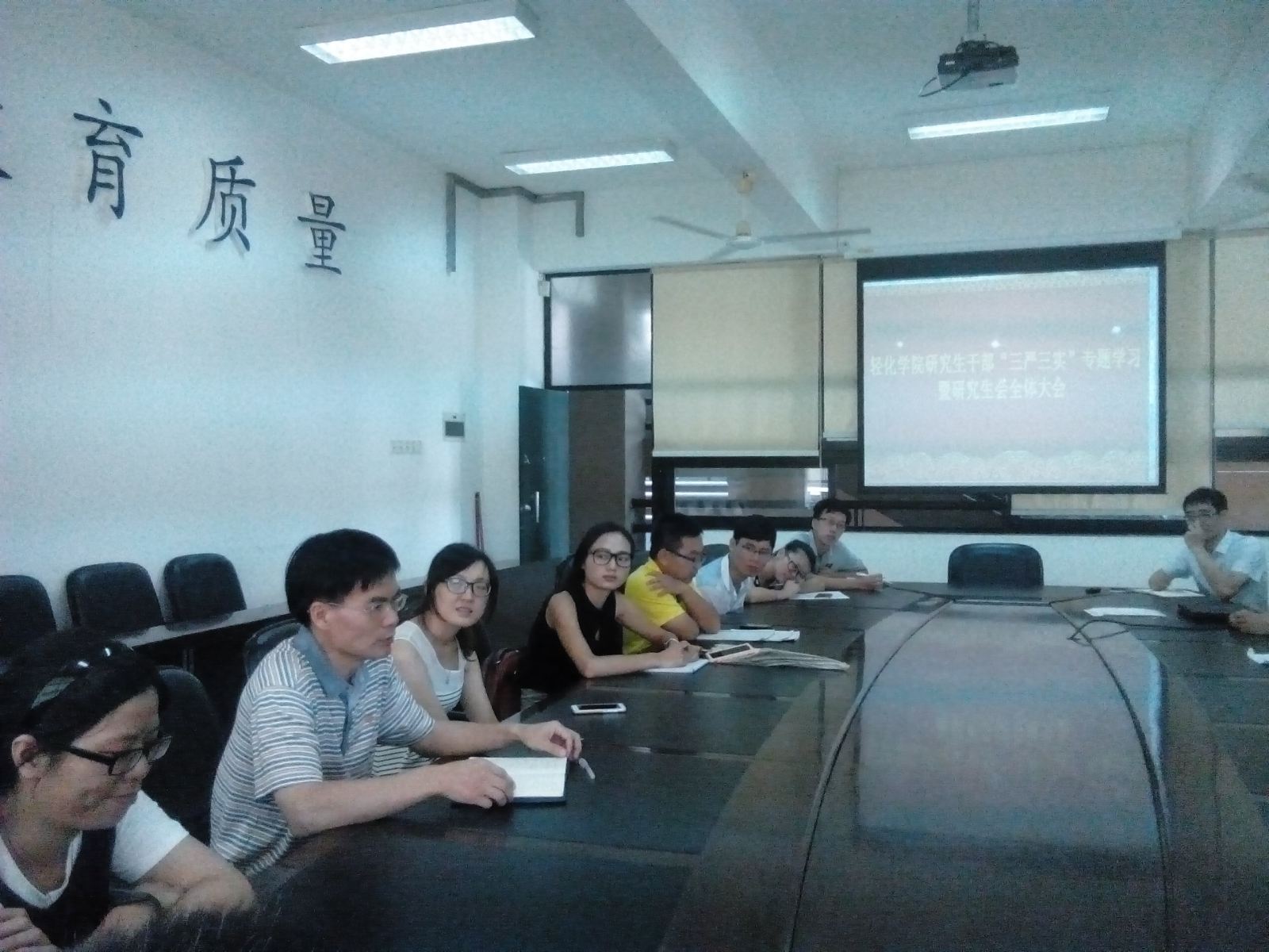 研究生干部“三严三实”专题学习暨研究生会全体大会在工学三号馆220会议室举行。 学院党委书记周东斌同志出席并专题讲话,研究生辅导员冯树清老师、研究生各党支部主要骨干及研究生会成员参加了会议。