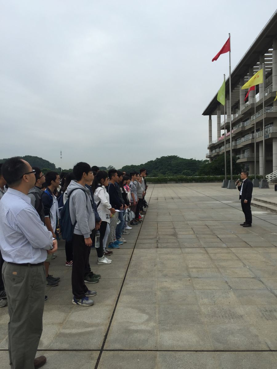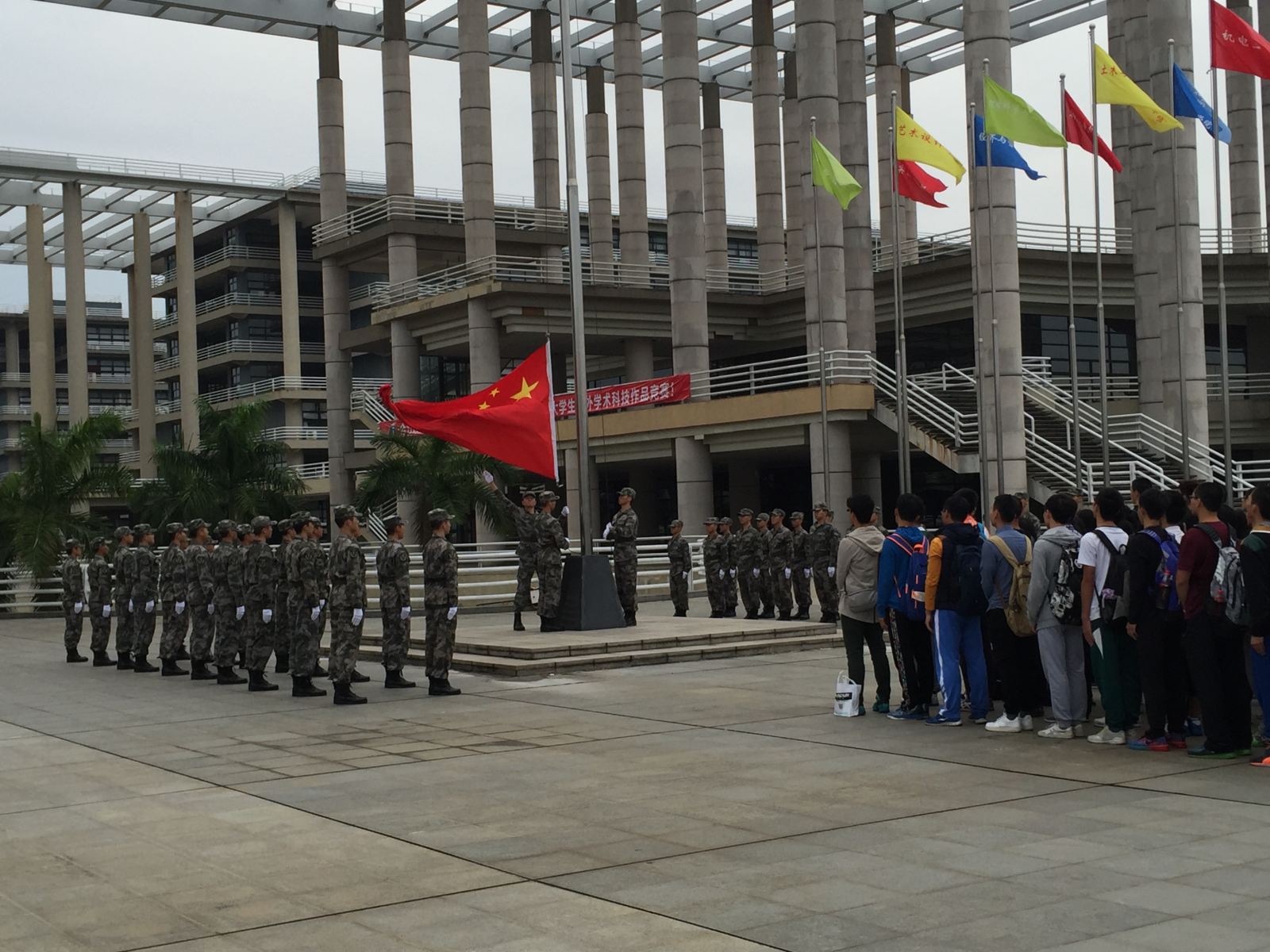 师生在学校正门广场参加升国旗仪式。学院党委苏兆祥副书记、学生处就业指导中心张智老师2015级辅导员毛元渊老师和2015级新生参加了本次升旗仪式。