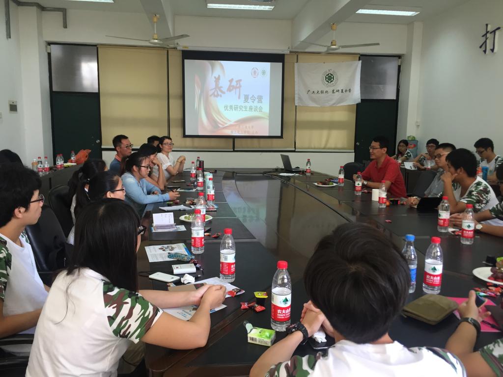 优秀研究生代表潘成强、付彤、程高、吴盼盼、朱东雨与营员们分享了在轻化学院读研的经历与体会。随后,动漫狂