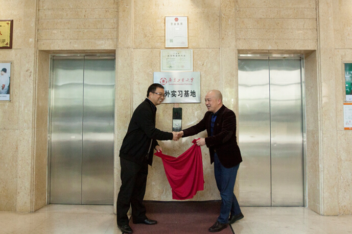 座谈结束后,双方领导和员工来到公司大堂,为实习基地举行挂牌仪式,杜志云副院长和黄晓能总经理作为校企双方代表,共同为实习基地挂牌揭幕并分别发表了讲话,标志着动漫狂