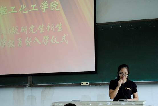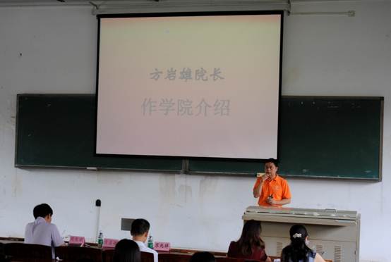大家庭表示热烈的欢迎,接着介绍了学校、学院的基本情况,最后从德、能、勤等方面勉励新生在新征程上取得更大进步。
