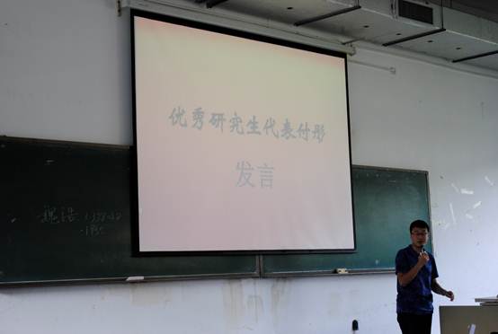最后,优秀研究生代表付彤为大家传授了自己研究生期间的学习工作经验,新生代表魏浩也分享了自己选择读研的想法与读研生涯的规划。