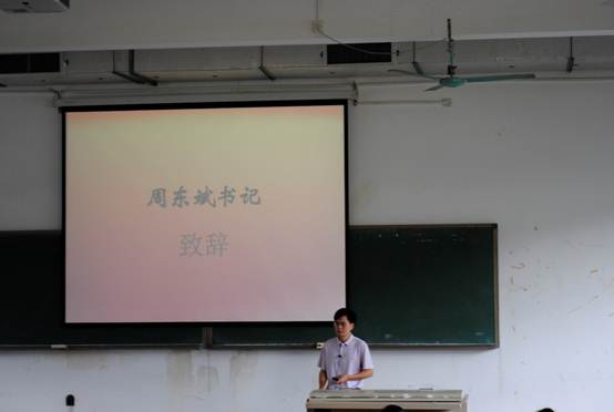 大会开始,由周书记代表学院致辞。周书记首先对新同学加入动漫狂