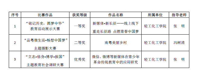 日前,由省教育厅组织开展的2016年“我的中国梦”——“立志·修身·博学·报国”主题教育系列活动评选结果公布,动漫狂 成绩优异,其中一等奖1项,二等奖1项,优秀奖1项,向获奖团队和个人表示祝贺! 此次省教育厅“我的中国梦” ——“立志·修身·博学·报国”主题教育系列活动自去年6月份启动以来,动漫狂 积极动员,广泛宣传,把各项主题教育活动的开展同引导青年学生坚定理想信念和践行社会主义核心价值观紧密结合,取得了积极的教育成效。