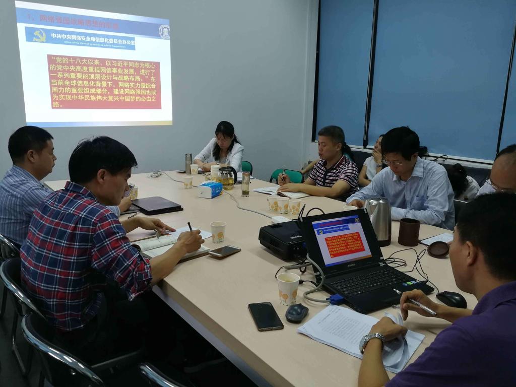 周东斌同志首先与大家一起学习了习近平总书记在全国网络安全和信息化工作会议上发表的重要讲话精神,谈到随着国家科技、军事、经济等方面进步,网络文明、网络安全,依法管网的重要性日益凸显,全体党员同志要增强依法用网、文明护网意识。