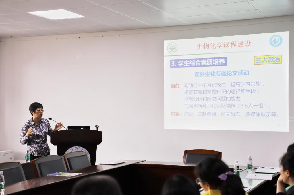黄志纾教授带领的生物化学教学团队是省级教学团队,该团队开设的生物化学课程为省级精品资源共享课程。教学团队长期开展教学改革与研究,建设成果卓著,并于2017年获广东省教学成果奖一等奖。本次黄志纾和欧田苗老师将生物化学课程的教学体系建设经验,结合多年教学经验及心得体会分享给了与会师生。