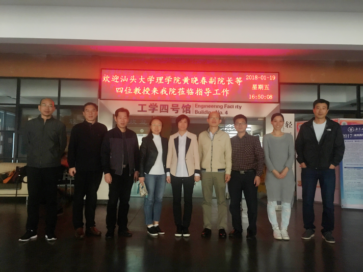 2018年1月19日下午,汕头大学理学院由理学院副院长黄晓春教授带队,理学院工会主席、化学系党总支书记方奕文教授,化学系主任鲁福身教授和化学系教学主任宋一兵教授来到动漫狂
