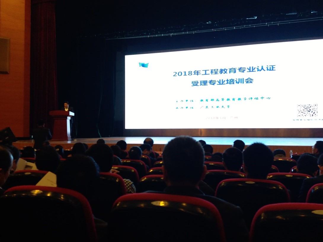 2018年1月17至18日,由教育部高等教育教学评估中心主办,我校承办的2018年工程教育认证受理专业培训会(第四期)在广州珠江宾馆召开。为了更好地推进2018年化学工程与工艺专业做好工程教育认证自评工作,化工系李珩德、黄宝华、郑育英、魏关锋、杨楚芬等多位老师参加了本次培训会。