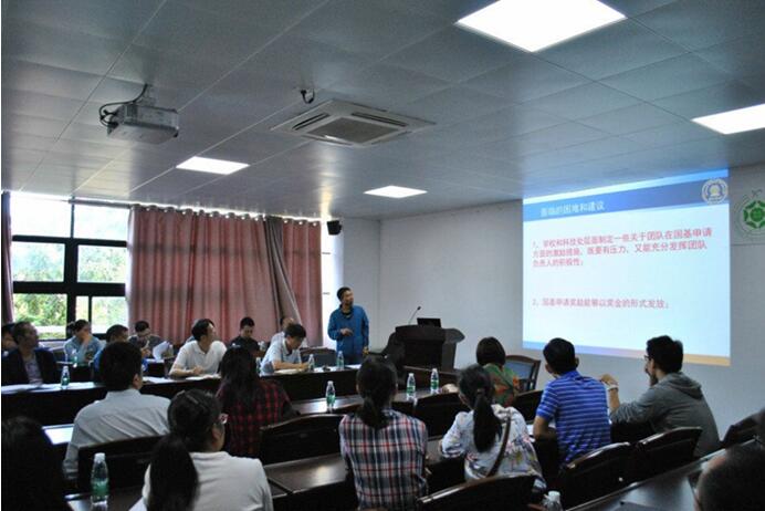 其次,科技处副处长刘鑫在发言中对轻化学院所取得的成绩给予充分肯定,并就老师们关心的国基申请问题,做出了耐心的解答。