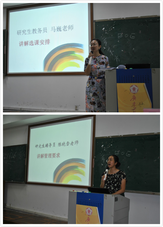 最后,教务员马巍老师和辅导员陈晓雪老师讲解研究生培养、选课等相关制度及管理要求。在陈晓雪老师的主持下17级新生推选产生了班级班长、党支书及团支书。